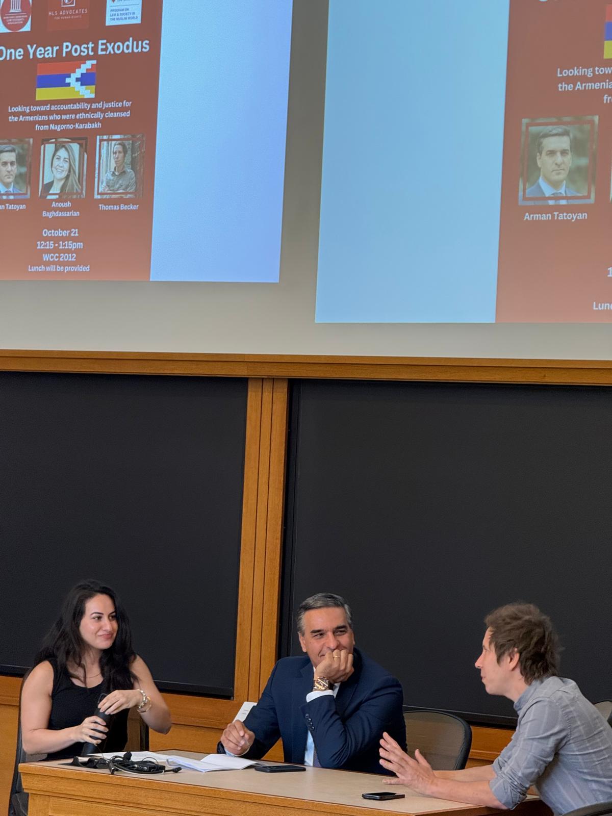 During the lecture at Harvard University School of Law Artsakh’s and the facts of Azerbaijani crimes against Armenia, racist and Armenian policies were discussed from the point of view that they are full evidence of the Azerbaijani government’s [present] ongoing genocidal intent and responsibility.
