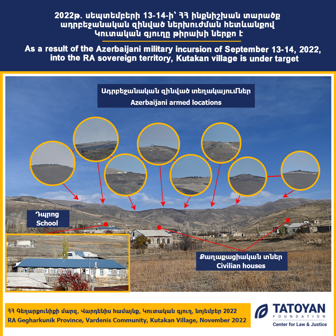 In Gegharkunik as a result of the Azerbaijani invasions of September 13-14, 2022 their shootings have become an integral part of everyday life in villages. New facts verified by the Center for Law and Justice “Tatoyan” Foundation November 29, 2022 Read More >