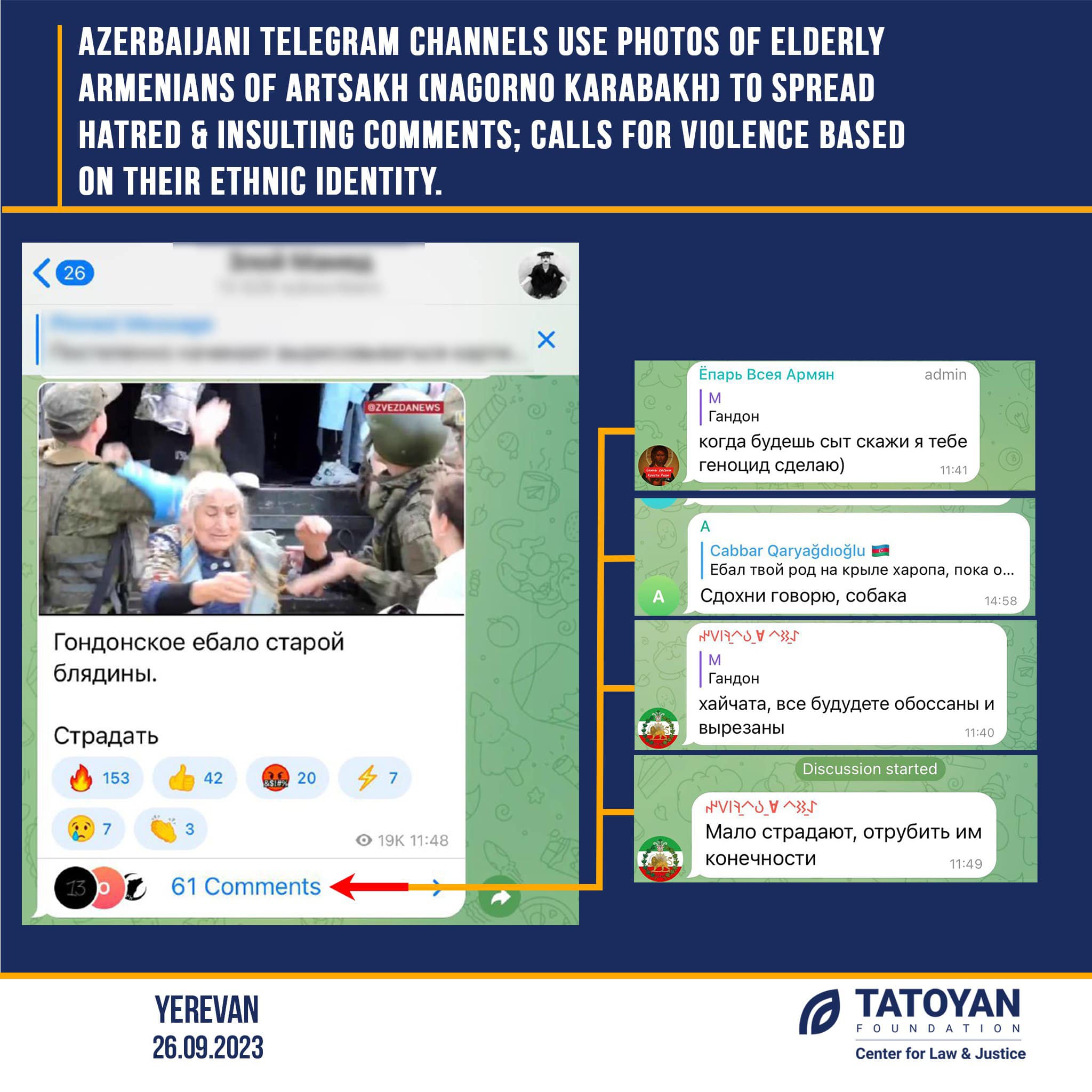 Comments in Azerbaijani social media contain calls for murder, violence and degrading comments about Armenians, including Armenian women (mothers, daughters; sisters, etc.) based on ethnic identity.